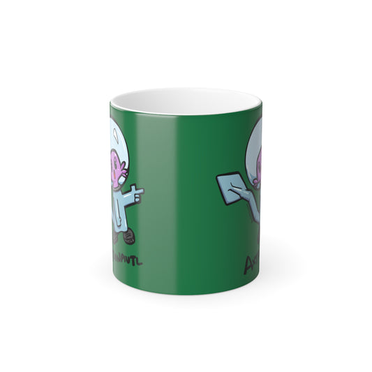 Color Morphing Mug — Cute Astronaut Axolotl Design, Light Green, 11oz