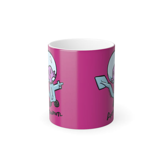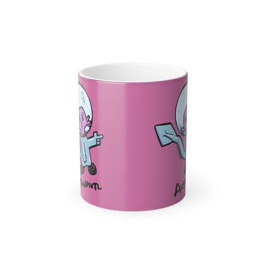 Color Morphing Mug — Cute Astronaut Axolotl Design, Pink, 11oz
