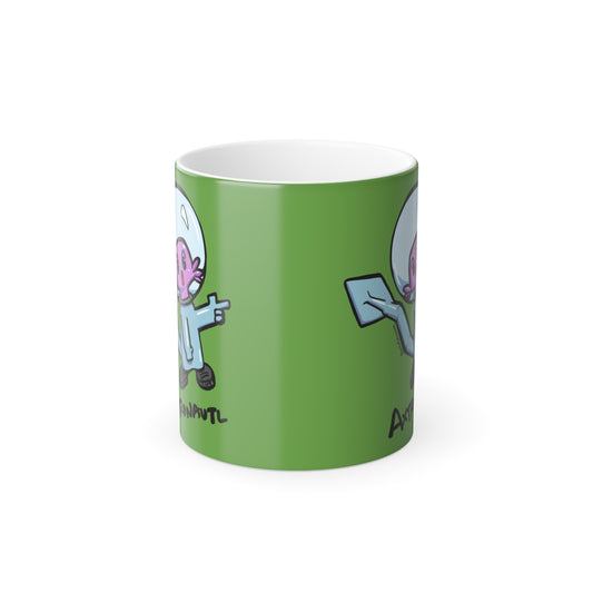 Color Morphing Mug — Cute Astronaut Axolotl Design, Light Green, 11oz