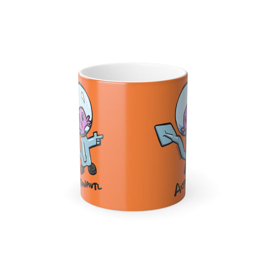 Color Morphing Mug — Cute Astronaut Axolotl Design, Orange, 11oz
