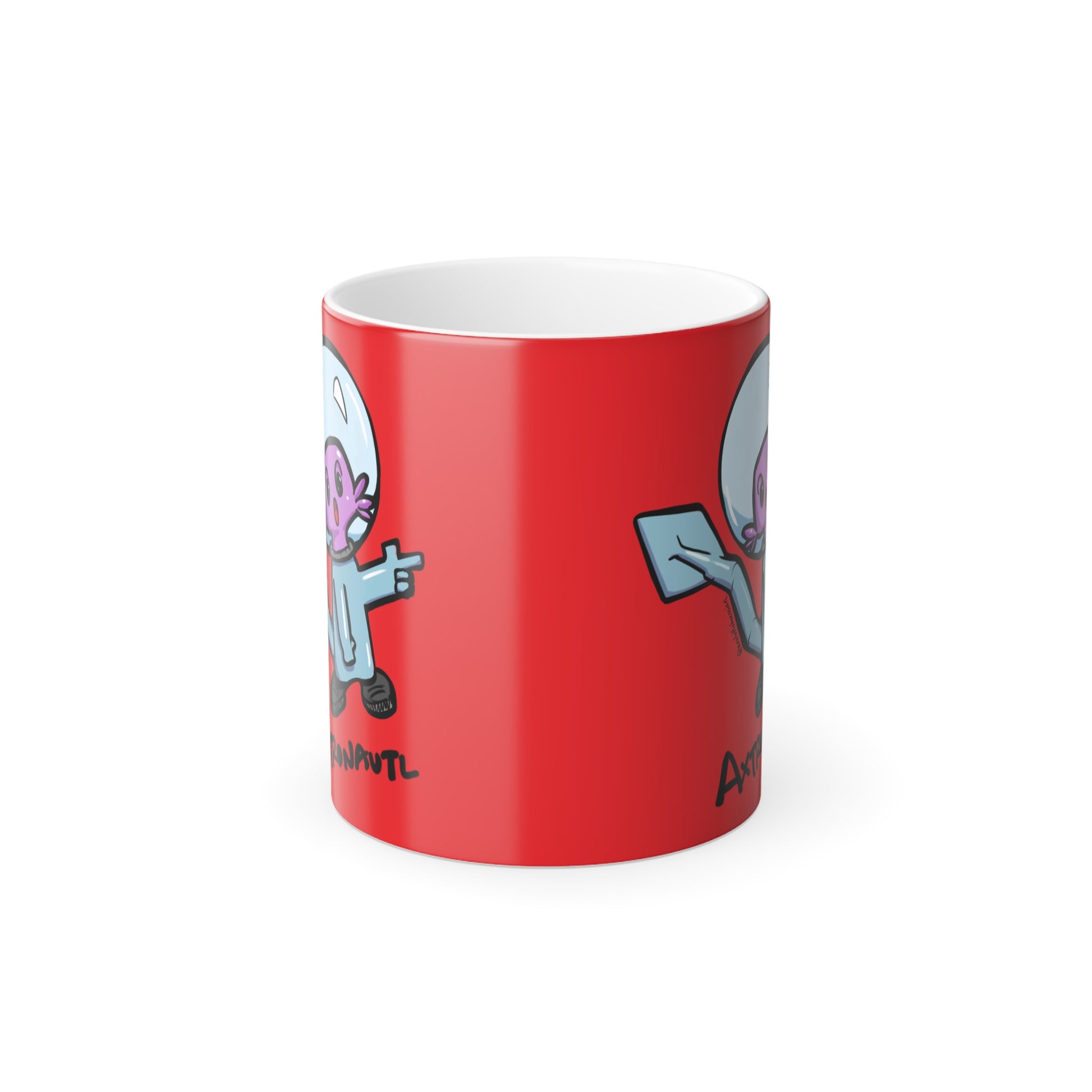 Color Morphing Mug — Cute Astronaut Axolotl Design, Red, 11oz